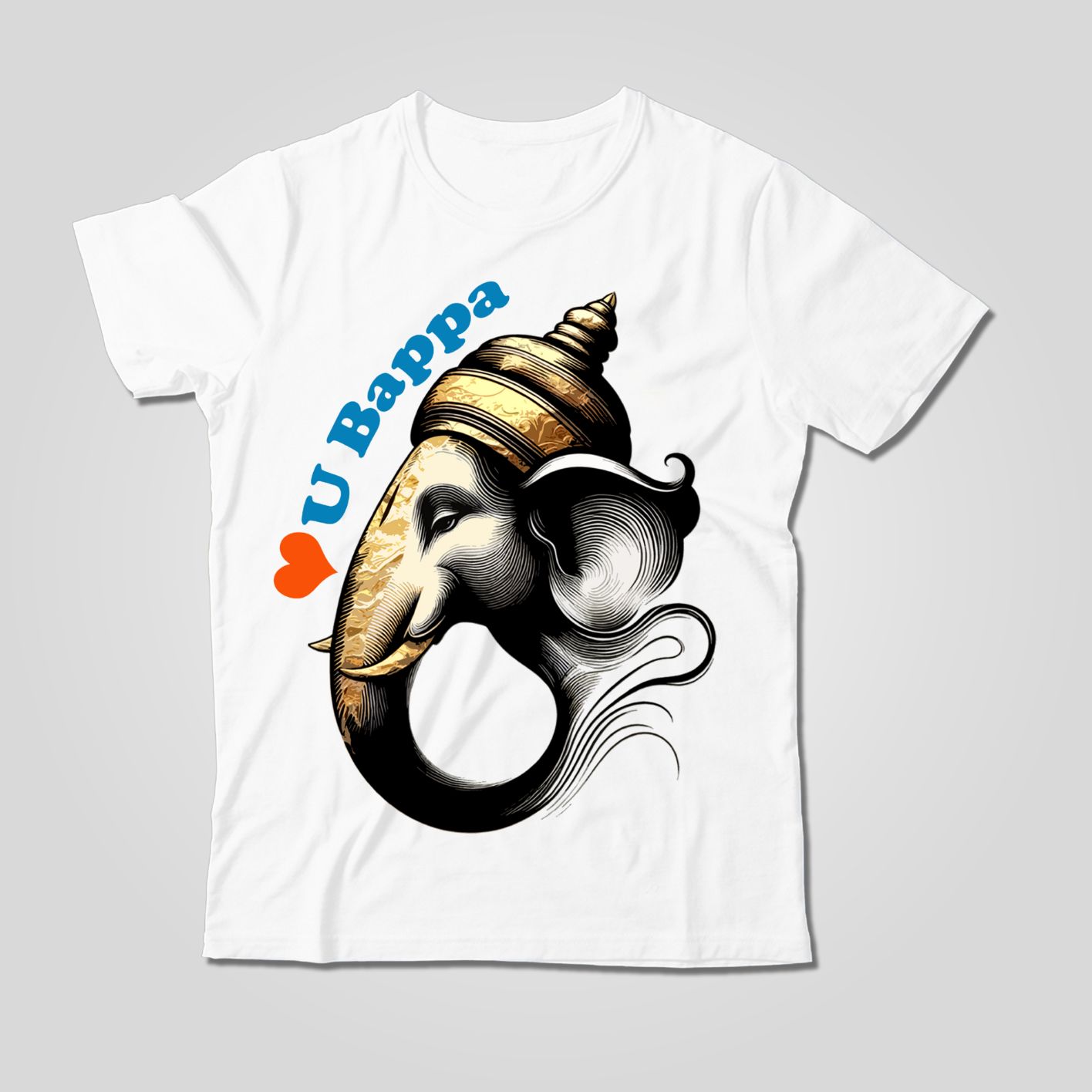 Celebrate devotion with a modern twist! This vibrant t-shirt showcases Lord Ganesha in detailed artistry, crowned with golden hues and paired with the playful text “U Bappa” and a heart symbol. Whether for Ganpati celebrations or daily wear, this tee adds love and cultural pride to your child’s wardrobe.