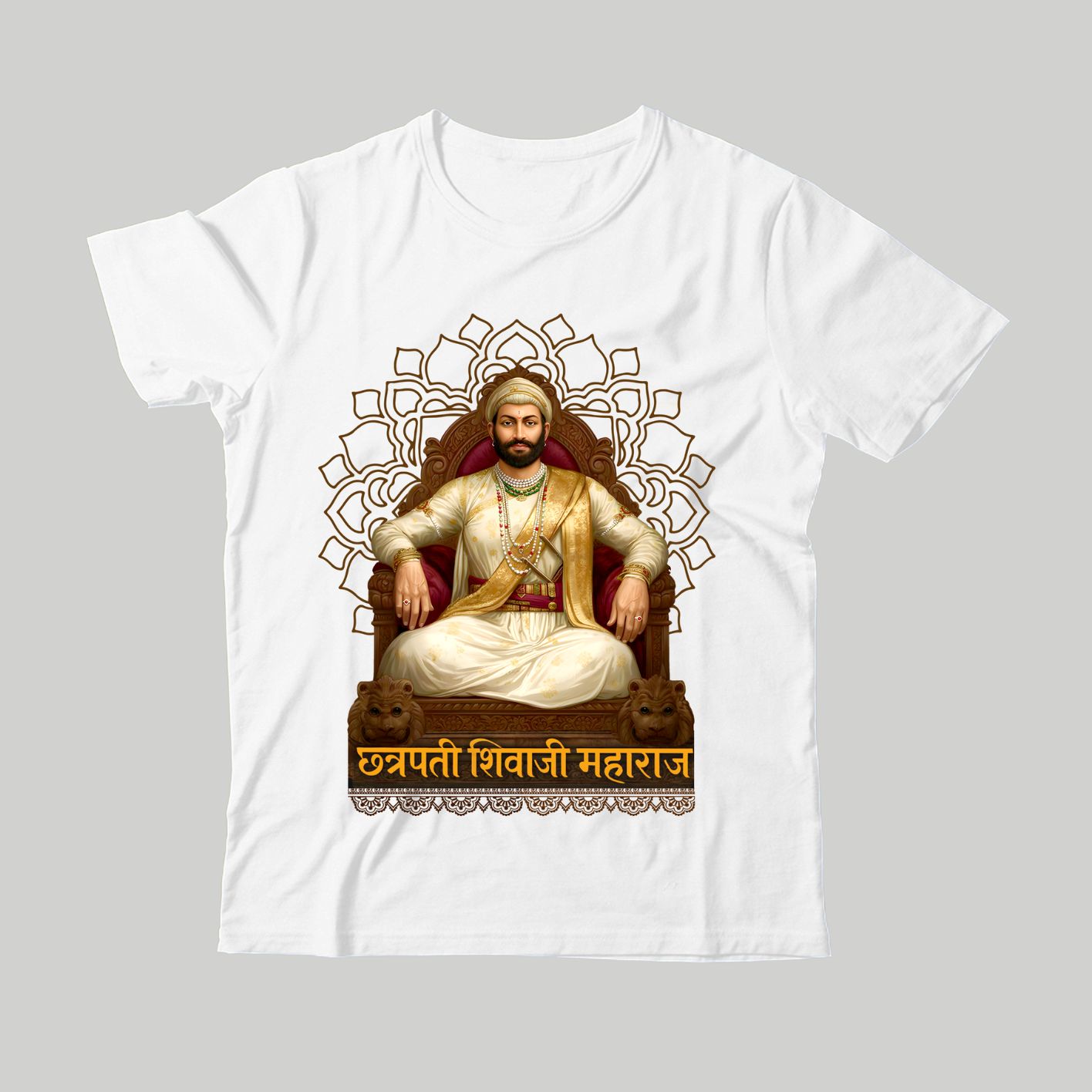 Every detail, from the regal posture to the traditional ornaments, reflects leadership, discipline, and honor. Designed for those who wear history with confidence, this T-shirt is perfect for Shivjayanti processions, celebrations, and statement wear.