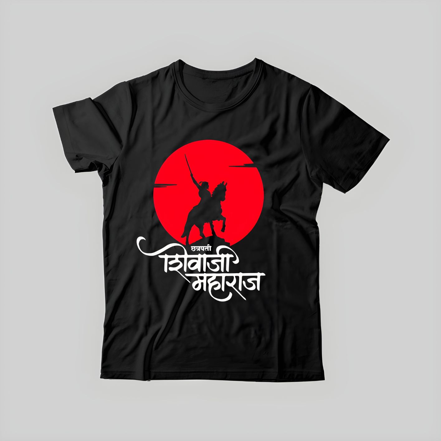 This design speaks to action, movement, and leadership — perfect for Shivjayanti celebrations, street processions, and statement wear. Made with premium-quality fabric and sharp printing, it is designed for those who prefer symbolism over detail, power over decoration.