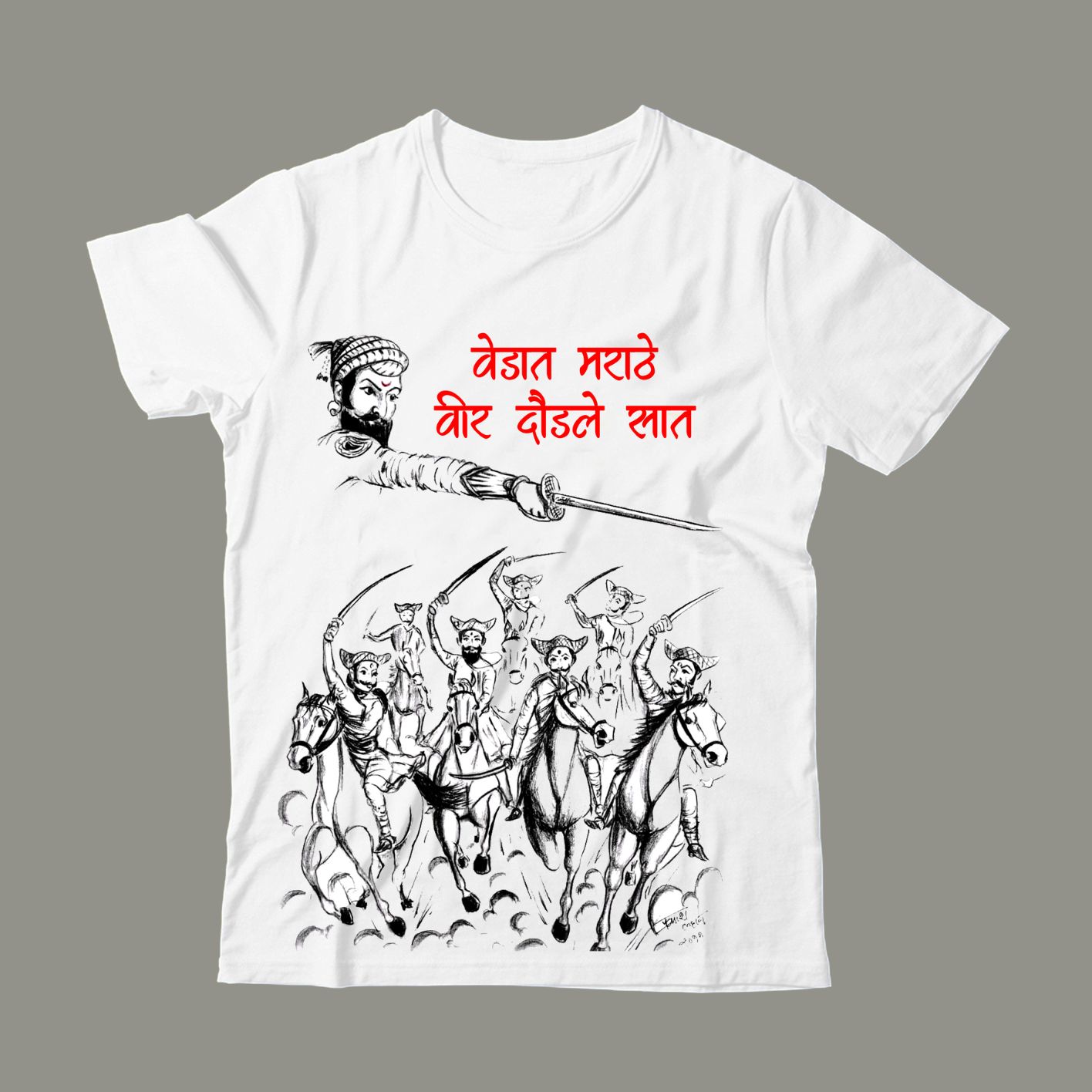 Vedaat Marathe – The Relentless Charge T-shirt represents the raw energy of the Maratha warriors charging together under the command of Shivaji Maharaj. The hand-drawn war illustration paired with the bold red Marathi typography reflects aggression, loyalty, and collective bravery.